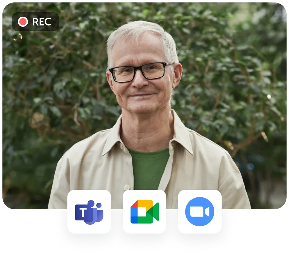 Seamlessly record meetings on all major platforms like Zoom, Google Meet, and Microsoft Teams.